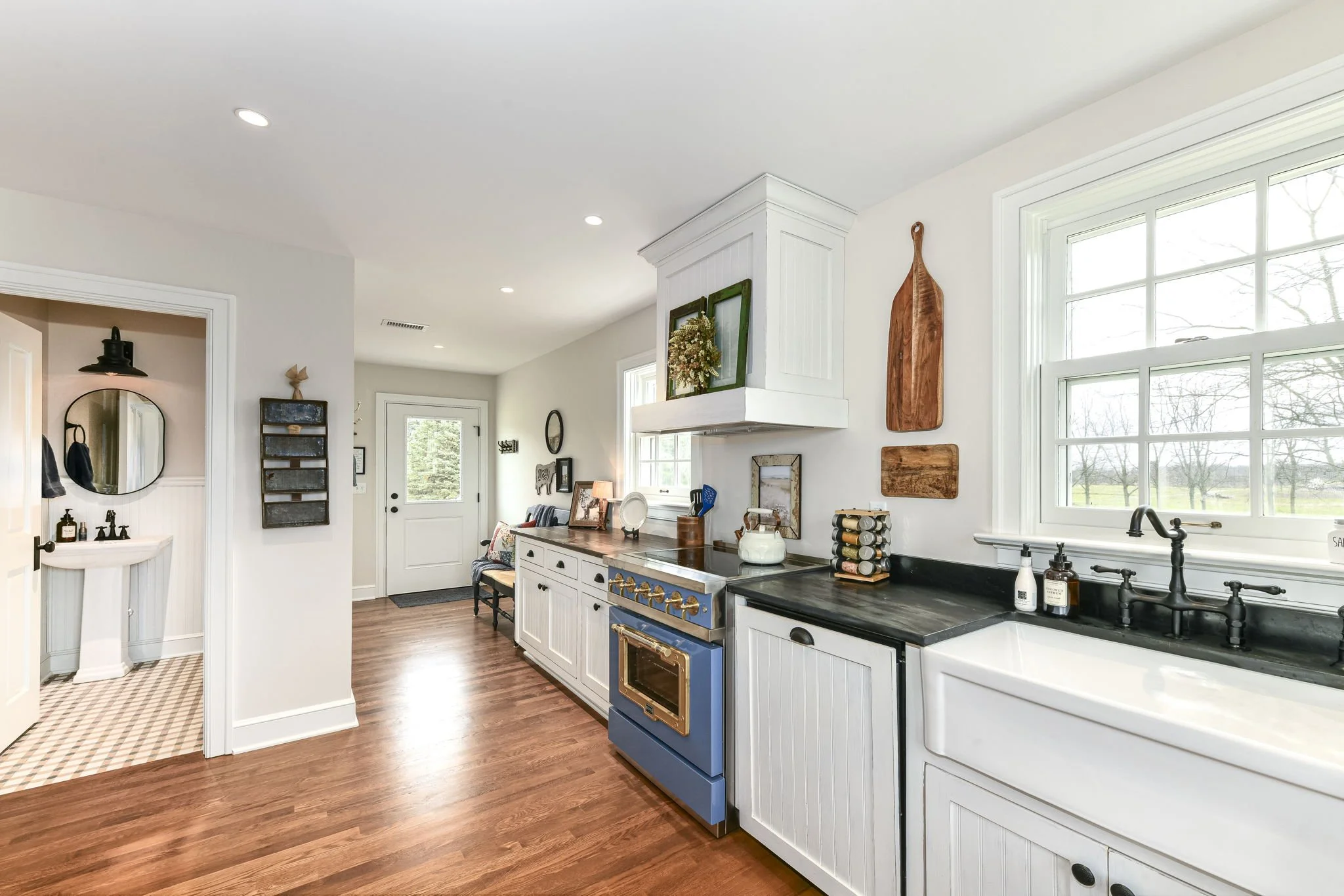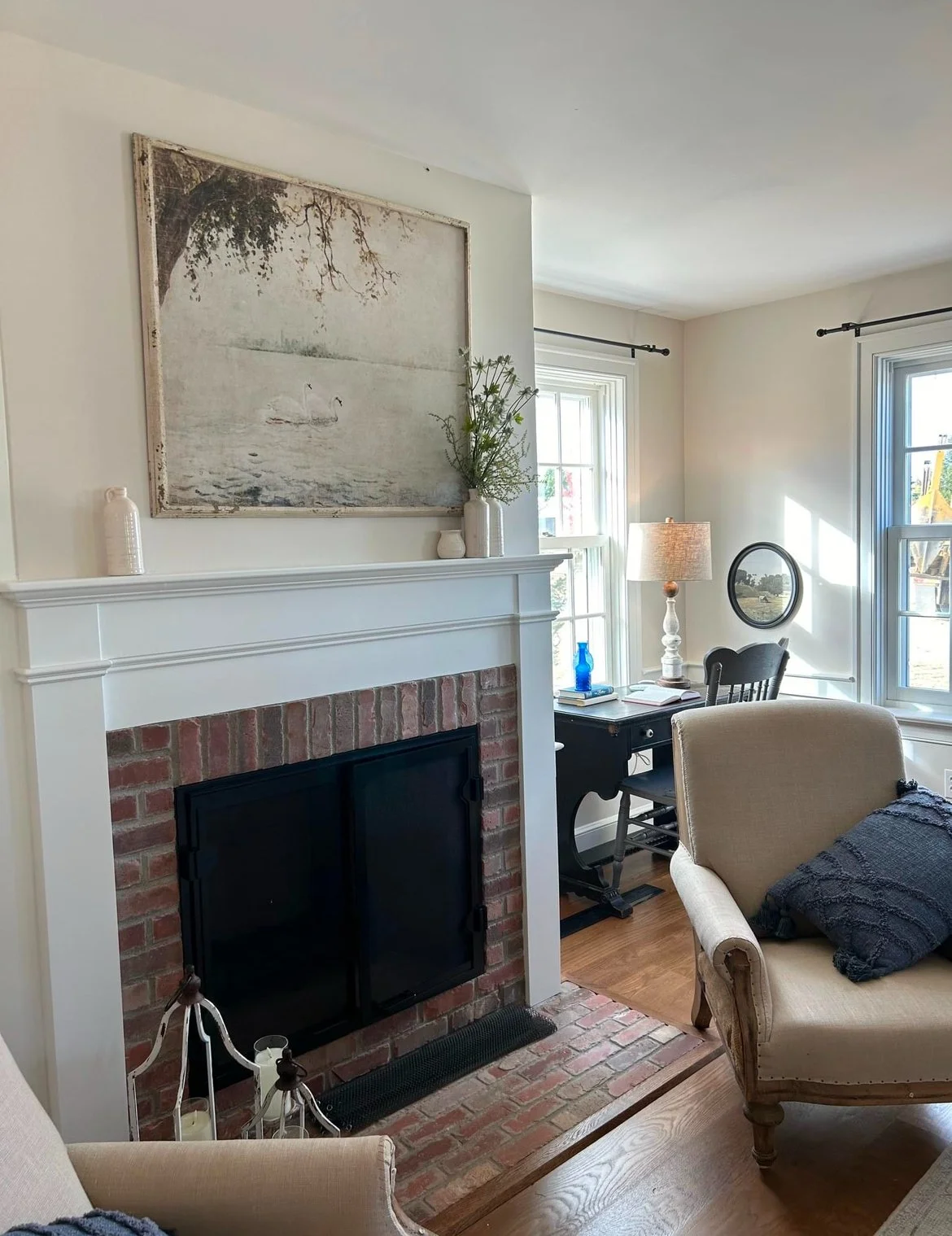 This beautifully recreated home is a three bedroom, two bathroom home with all of the modern amenities. The home sleeps up to six adults. Cozy up in front of the brick fireplace with a book and cozy blanket. Imagine visiting your grandmother’s farmhouse and being allowed to use the good china at every meal! Our cottagecore vibe, with layers of blankets and quilts on each bed allows for you to truly find a home away from home! The home is decorated with vintage and found items and we love to share our Big Chill oven and refrigerator with guests.